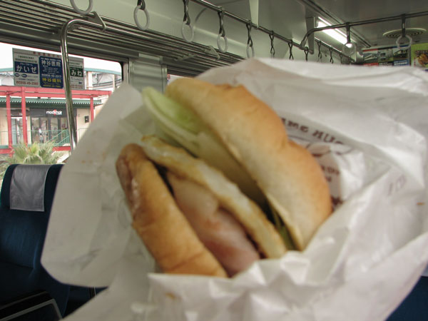 駅でもバーガーがお出迎え。