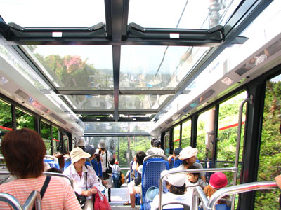 ケーブルカーは天井までガラス張りで、見晴らし最高。