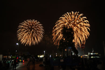 この辺りでは景気の良い花火がバンバン打ち上がってました。