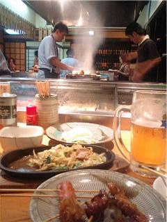 2人で串20本、ホルモン鉄板、山芋たんざく、焼きおにぎり、