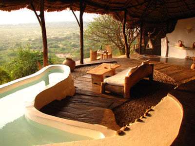 1軒だけあるロッジは、開放的な造りで、部屋に入った途端