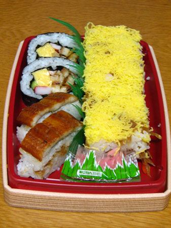 近所のデパートで開催中の「うまいもんフェア」で買ってきた大村ずし。
