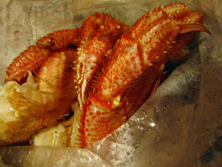 お客が少ないからか、ずらりと並んだ花咲ガニ、毛蟹、たらば蟹を