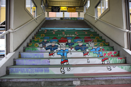 富良野駅の階段。