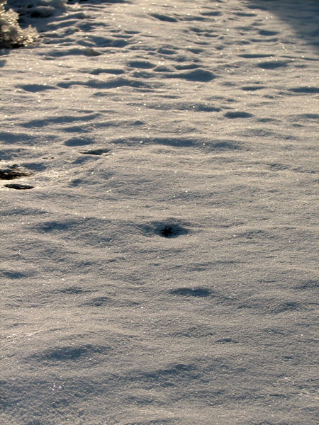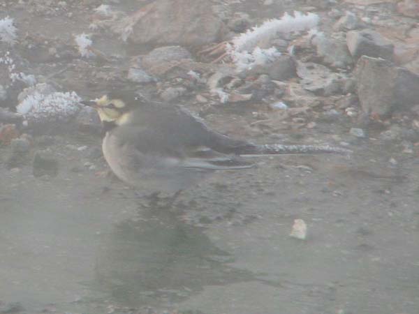 凍ってるのか、雪でもついたのか、尾っぽから背中、頭まで白くなってるこの小鳥も、
