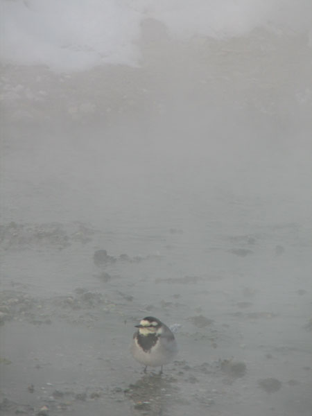 温泉が流れ込んでいるので、絶え間なく水蒸気があがっています。