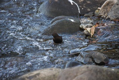 ついでに、川底をあさってイクラを食べてるカワガラスも発見。