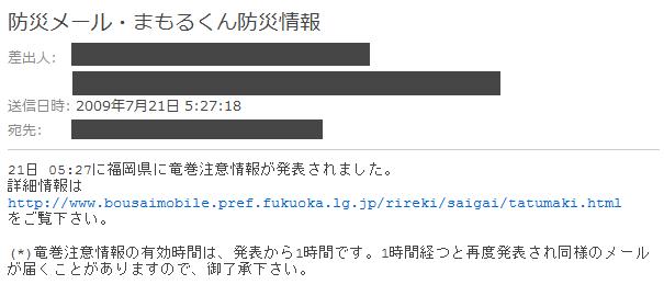 ところで昨日、起きると防災メールまもるくんから携帯に入っていた1通のメール。
