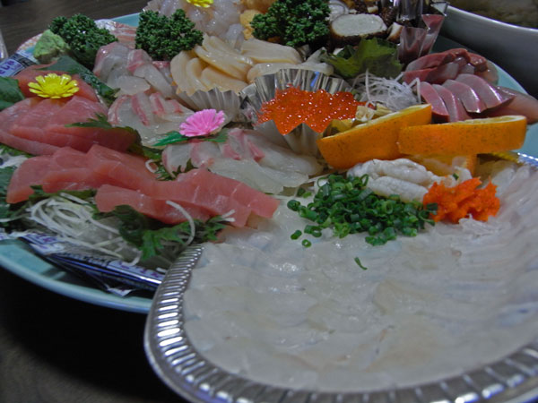活きサザエ、あじ、たこ、ゴマ鯖、生マグロ。