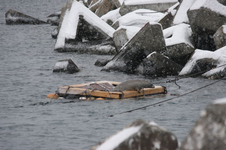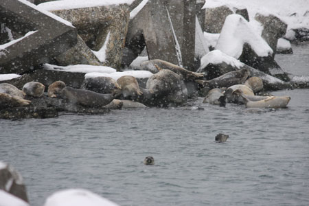 抜海港でゴマフアザラシ見物(2~30分)>>