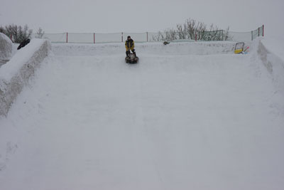 観光バスチケットで、スノーモービルとスノーラフティングの