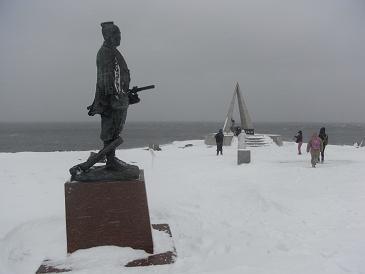 銅像は、間宮海峡を発見した間宮林蔵です。
