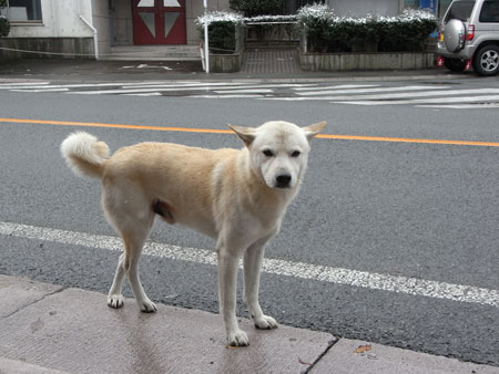 と、声をする方を探すと、道路の向こうからピョコッと顔を出し、
