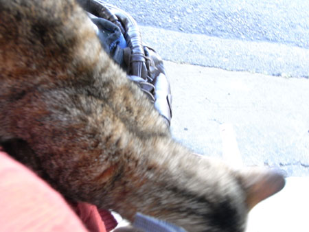 ピョコンッと私の膝の上へ飛び乗ったキジネコちゃん。