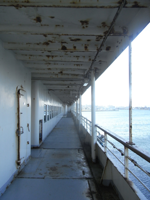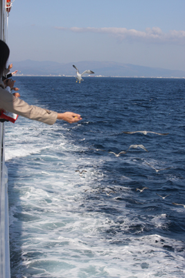 皆知ってるらしく、おばさま方がワラワラと甲板でパン投げて