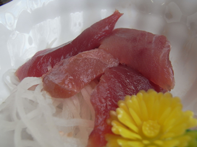 お刺身は諦め、マグロのモツを煮込んだお汁をいただく。