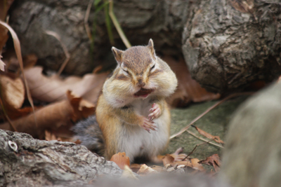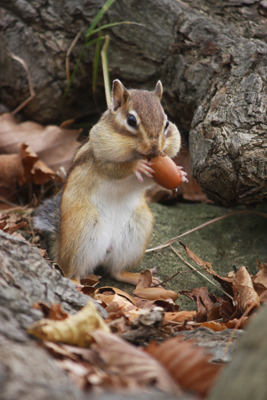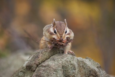 冬眠をするシマリスちゃんは、ベッド作りの葉っぱ集めに大忙し。