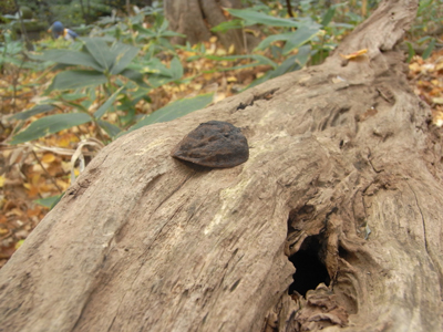 目が合うとポロリとクルミを落としてどこかに走り去りました。